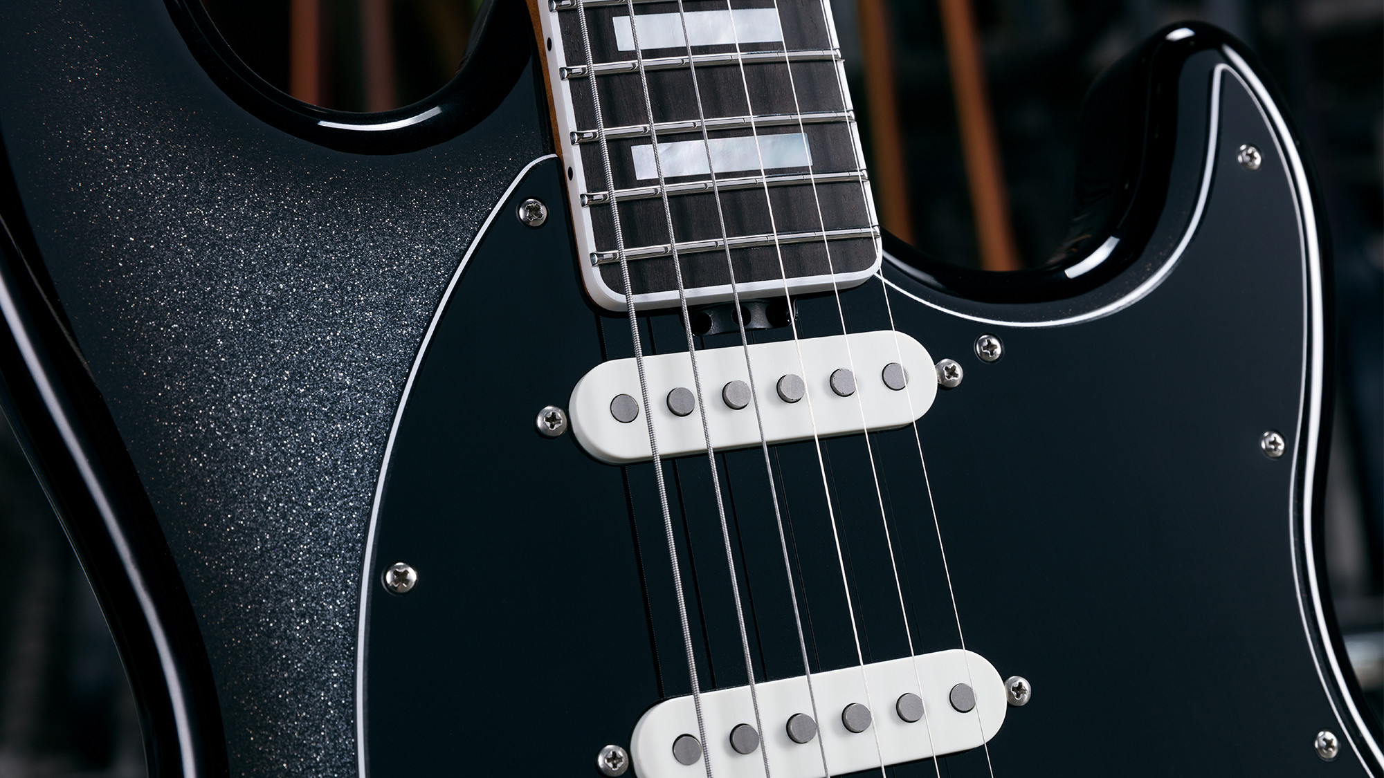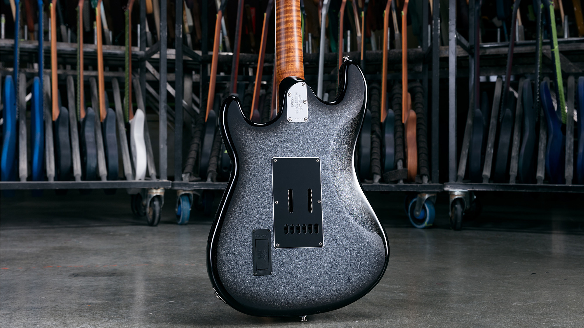 Lightweight Alder body in an exclusive Smoked Chrome Burst Sparkle finish.