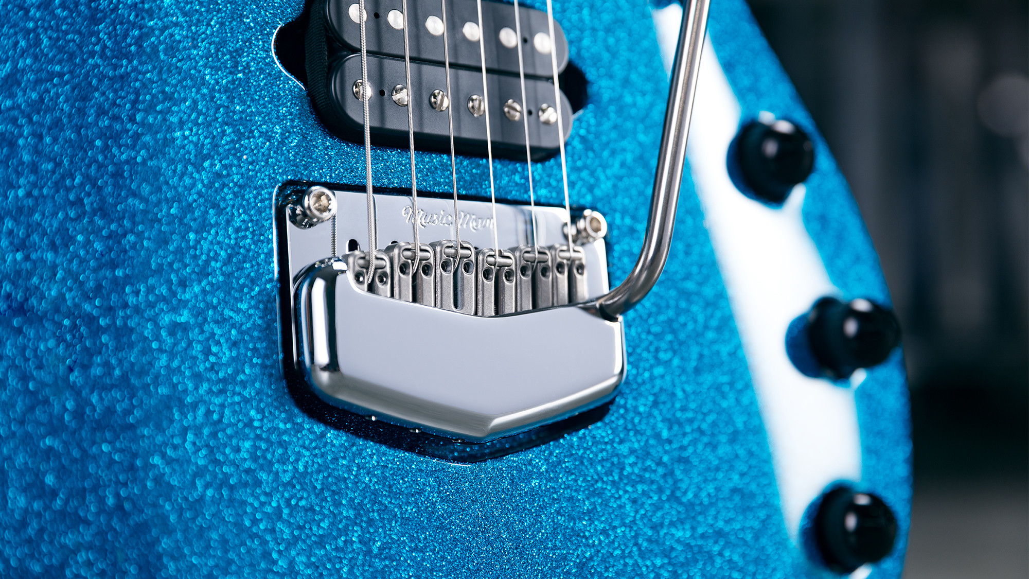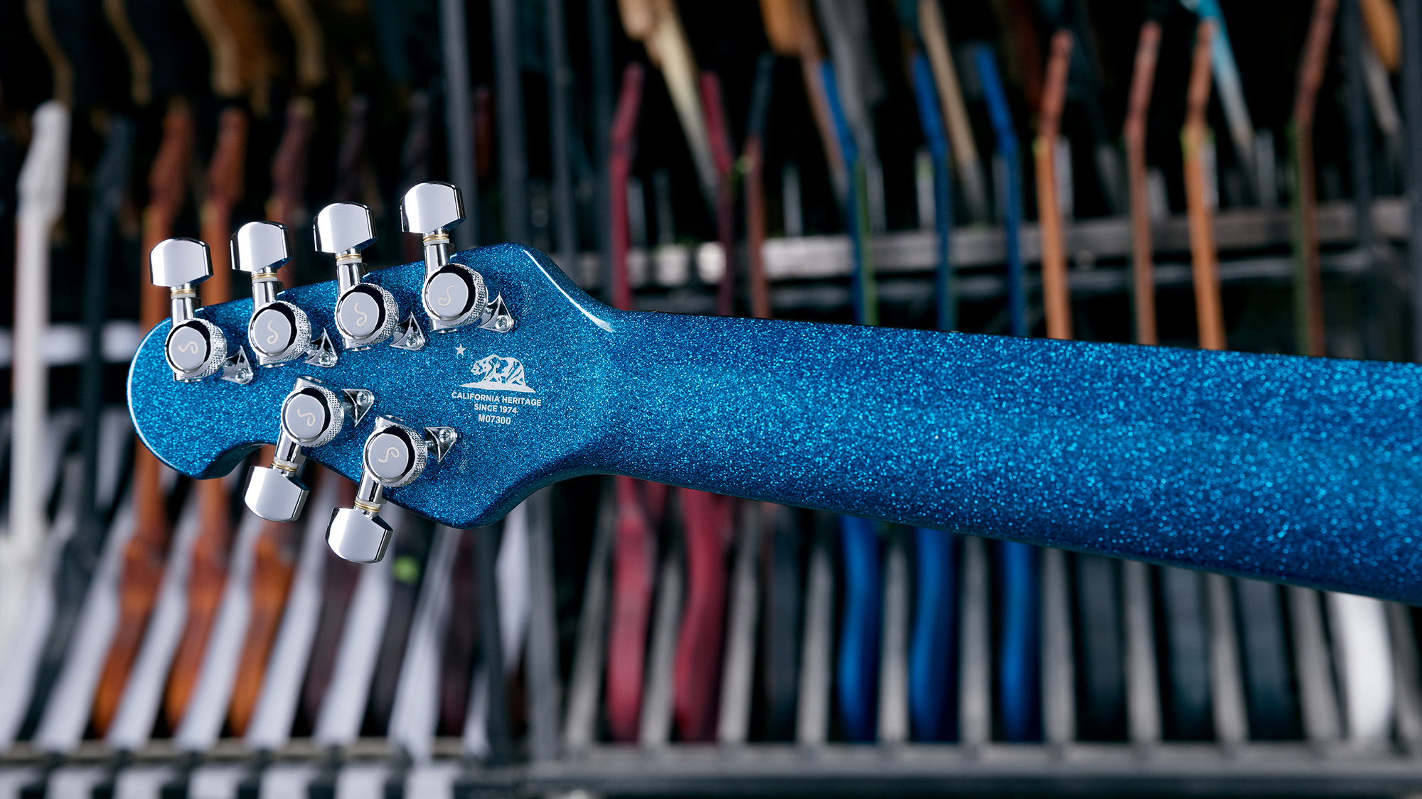 Striking Marine Blue Sparkle finish covering the entire body, headstock, and back of the neck.