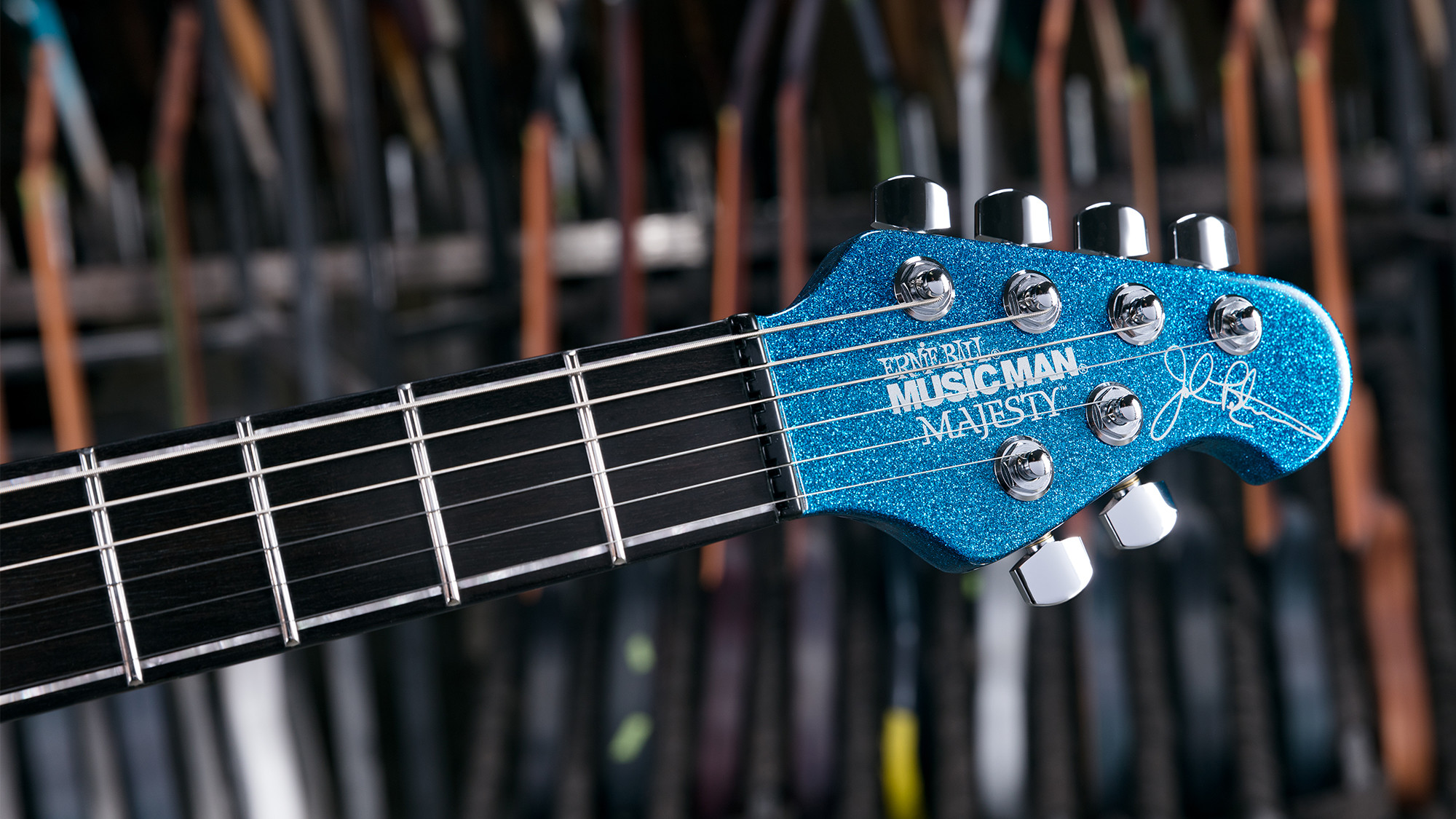 This month features the John Petrucci 15 7 string in Eminence, the Axis in Butterscotch, the Cutlass Guitar in Chrome Sparkle, and The Majesty in Blue Marine.
