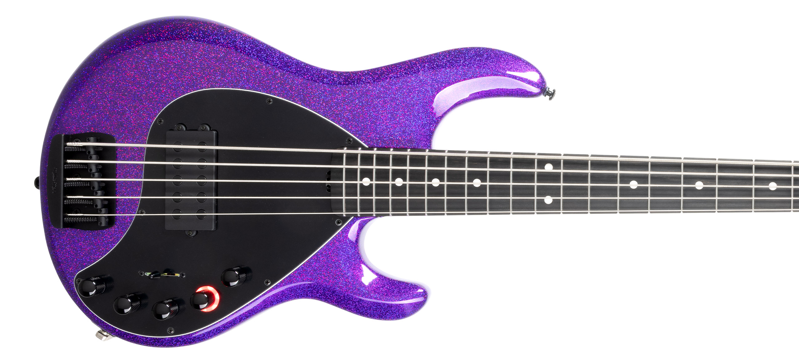 The DarkRay 5 bass is every bit a Stingray 5 Special with neodymium humbucking pickup, roasted maple neck, comfort contoured body, 22 stainless steel frets, all black hardware, and the familiar 4+1 headstock configuration.