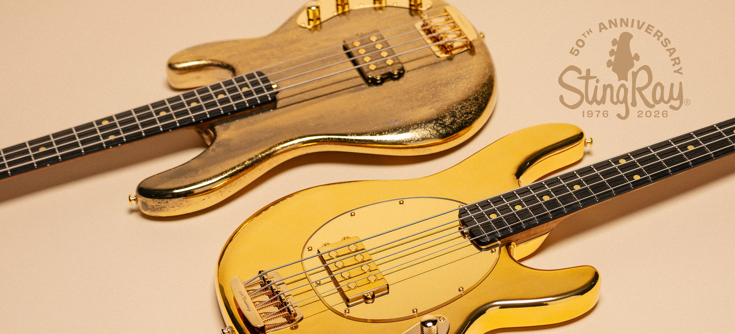 Celebrating 50 years of the iconic StingRay, these Golden Anniversary editions pay tribute to five decades of innovation, tone, and unmistakable style. Built with resonant poplar bodies, they deliver a balanced, responsive low-end growl with exceptional clarity and sustain. The roasted maple necks are paired with sleek ebony fretboards featuring elegant gold dot inlays, while glow-in-the-dark side dots provide precision and visibility on any stage. Finished in a striking high-gloss buff, these commemorative StingRays blend heritage craftsmanship with forward-looking performance—celebrating half a century of punch, clarity, and authority.